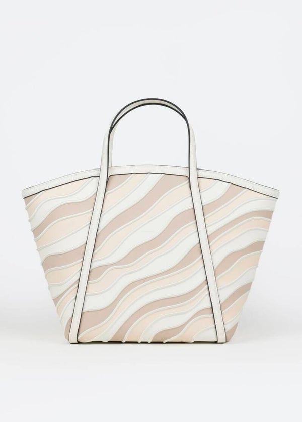 Große Handtasche mit Reißverschluss, aus einfarbigem bedrucktem Kalbsleder, verstellbarer Schulterriemen, silberne Verarbeitung.