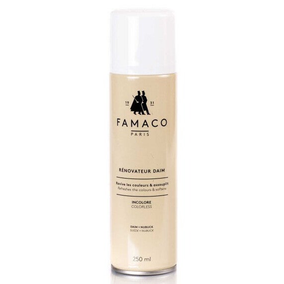 Farbloser Pflegespray für Raulederschuhe. Egal ob Wildleder, Nubukleder oder Velours. Hält das Leder weich und geschmeidig.